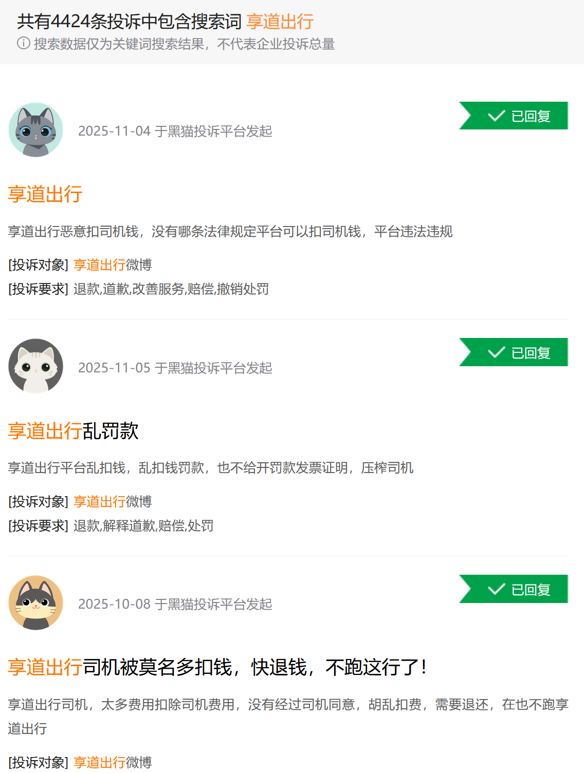 投诉平台数据显示,截至2025年11月5日,享道用户投诉超4400条,集中在无故扣费、判责不公与司机态度问题;近30天新增112起,已完成15起,解决率不足2%。公司表示正通过内部措施提升合规率,但聚合模式下的运力审核漏洞仍待弥合。IPO(首次公开募股)审核中,这或成为监管重点。