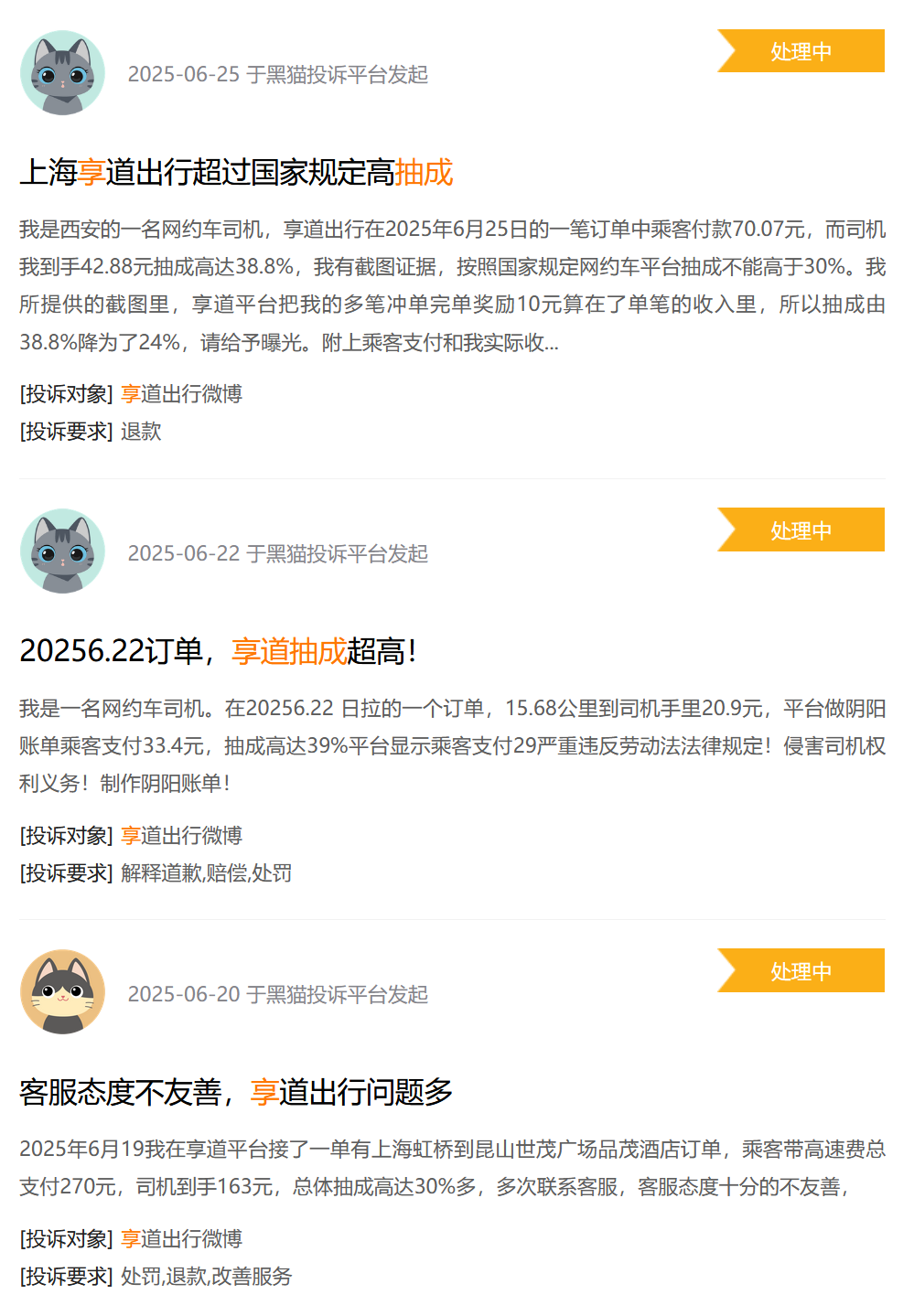 乘客端同样怨声载道。投诉量高企、解决率低,7月公司甚至登上黑榜首位,主要问题集中在扣费与判责。平台一边面临司机端不满,一边又依赖聚合平台维持流量,其所谓“生态协同”,更像内部供血不足的另一种表述。