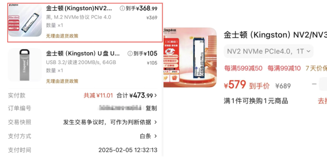 泡泡购买的固态硬盘2月5日只需369元,9个月后价格已上涨约57%。