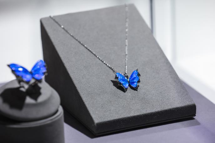 “艺境对白”展区联动英国驻上海总领馆、英国商业贸易部共同呈现80余件进口供应链优品,覆盖珠宝、家居与羊绒织物,集中展现融合深厚文化底蕴与先锋美学的英伦设计风尚。其中,英国家居品牌Established & Sons展出品牌Wrongwoods错木系列限量收藏版商品,该系列将英国艺术家Richard Woods的标志性彩色木纹与英国设计师Sebastian Wrong 的家具设计有机结合,缔造出与二十世纪中期设计风格呼应的独特美学;Slamp、Tom Dixon、David Hugh等英国知名家居品牌分别带来畅销款商品,通过大胆构造与材质创新,诠释艺术与功能美学。创立于1989年的当代个性珠宝品牌斯蒂芬·韦伯斯特(Stephen Webster)展出经典系列饰品,传递英伦美学与时尚个性。这些展品不仅是物品,更是文化的载体,激发观者的情感共鸣,开启一场与传统对话、与创意交融的精神旅程。