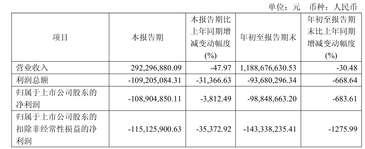 2025年前三季度,公司营业收入为11.89亿元,同比下降30.48%;归母净利润为-9884.87万元,同比下降683.61%;扣非归母净利润为-1.43亿元,同比下降1403.79%