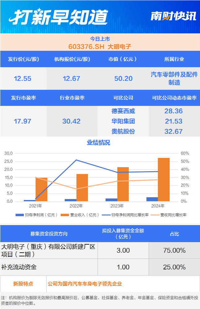 汽车电子龙头 比亚迪、蔚来“小伙伴”今日上市丨打新早知道