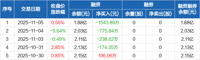 众鑫股份:连续4日融资净偿还累计2732.7万元(11-05)