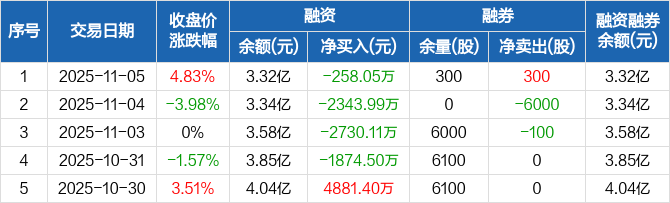 春秋电子融资融券信息显示,2025年11月5日融资净偿还258.05万元;融资余额3.32亿元,较前一日下降0.77%。