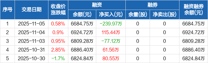 艾隆科技:融资净偿还239.97万元,融资余额6684.75万元(11-05)
