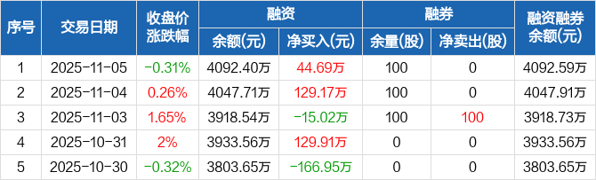 万丰股份:融资余额4092.4万元,创近一年新高(11-05)