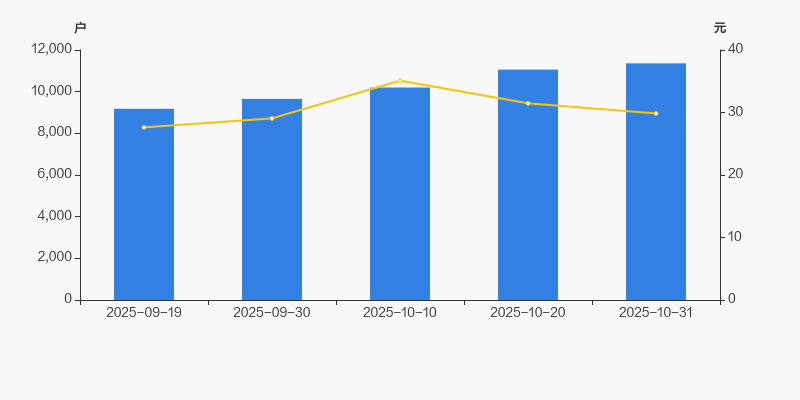 截至2025年10月31日,公司最新流通股本为1.2亿股。户均持有流通股数量由上期的1.09万股下降至1.06万股,户均流通市值31.53万元。