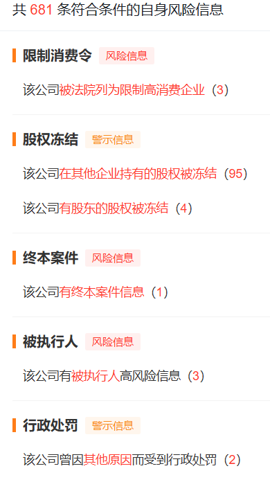 此外还有限制消费令、行政处罚、股权冻结等多项风险信息。