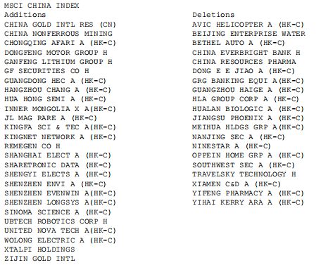 MSCI中国A股在岸指数成分股调整情况(来源:MSCI官网)