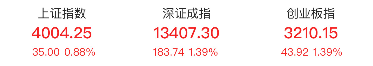 上证报中国证券网讯 11月6日,沪指半日涨0.88%,重回4000点整数关口。截至午间收盘,沪指涨0.88%,深证成指涨1.39%,创业板指涨1.39%。