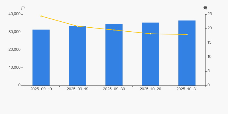 截至2025年10月31日,公司最新总股本为10.8亿股,其中流通股本为10.34亿股。户均持有流通股数量由上期的2.93万股下降至2.83万股,户均流通市值50.67万元。