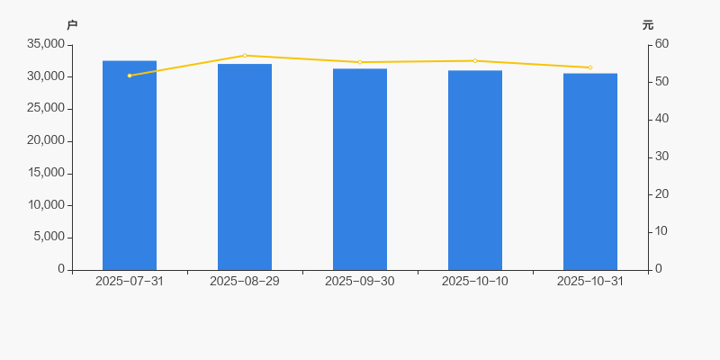 截至2025年10月31日,公司最新总股本为4.82亿股,且均为流通股。户均持有流通股数量由上期的1.55万股上升至1.57万股,户均流通市值85.03万元。