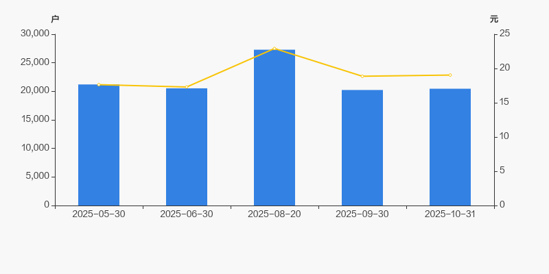 截至2025年10月31日,公司最新总股本为2.14亿股,其中流通股本为5605.84万股。户均持有流通股数量由上期的2771股下降至2740股,户均流通市值5.22万元。