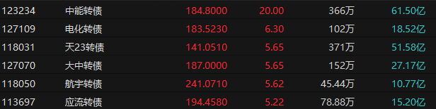 11月5日,中证转债指数收涨0.74%,报486.21点,成交金额695亿元。上涨方面,中能转债、电化转债、天23转债、大中转债涨幅居前,分别上涨20%、6.30%、5.65%、5.65%。下跌方面,中旗转债跌2.81%、信服转债跌1.74%、新致转债跌1.38%。