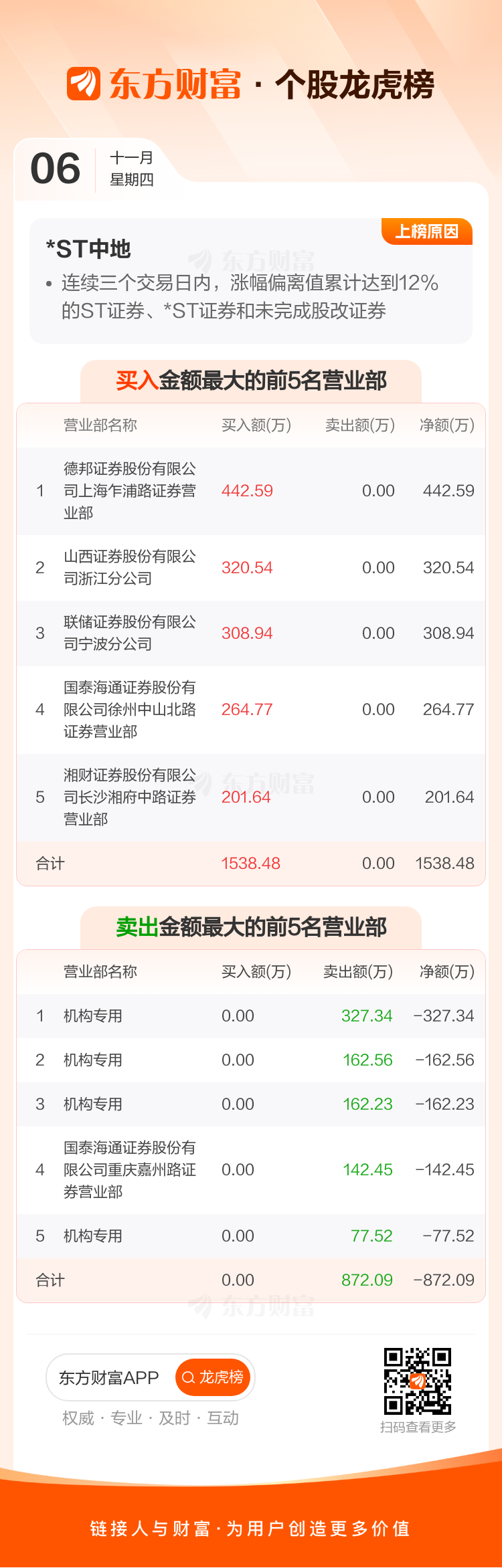*ST中地(000736)龙虎榜数据(11-06)