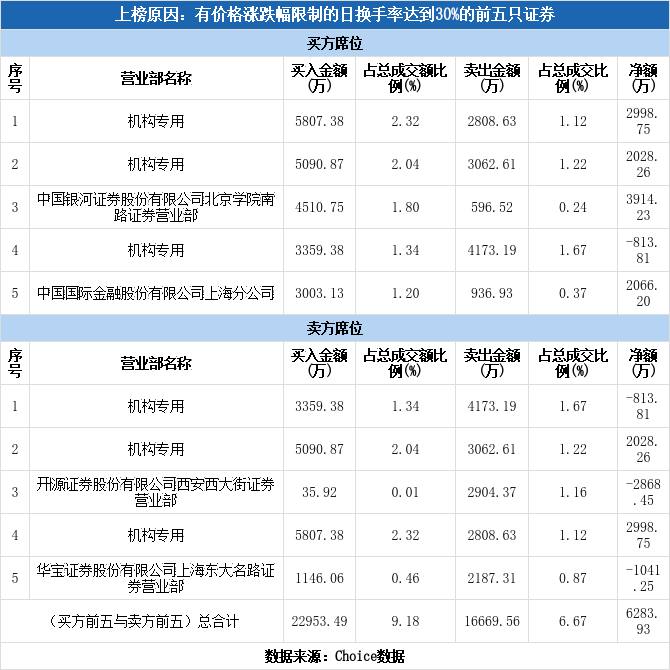 龙虎榜数据显示,今日共6个机构席位出现在龙虎榜单上,分别位列买一、买二、买四、卖一、卖二、卖四,合计净买入4213.20万元,占龙虎榜净买额的67.05%。