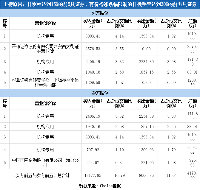 多主力现身龙虎榜,崇德科技上涨18.53%(11-06)