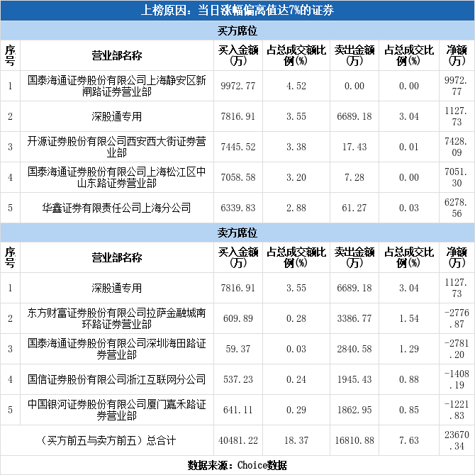 深股通现身龙虎榜,万向钱潮涨停(11-06)