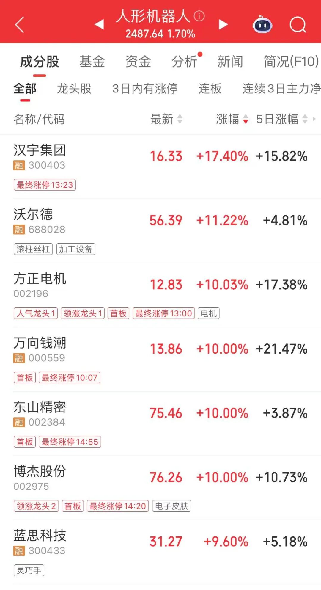 午后,机器人概念再度拉升,五洲新春、汉宇集团、方正电机、蓝思科技等大涨。