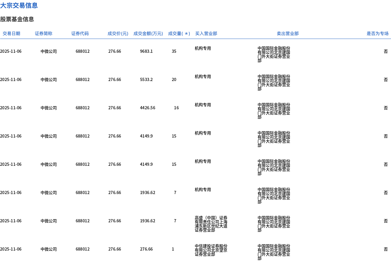 中微公司今日大宗交易折价成交116万股,成交额3.21亿元