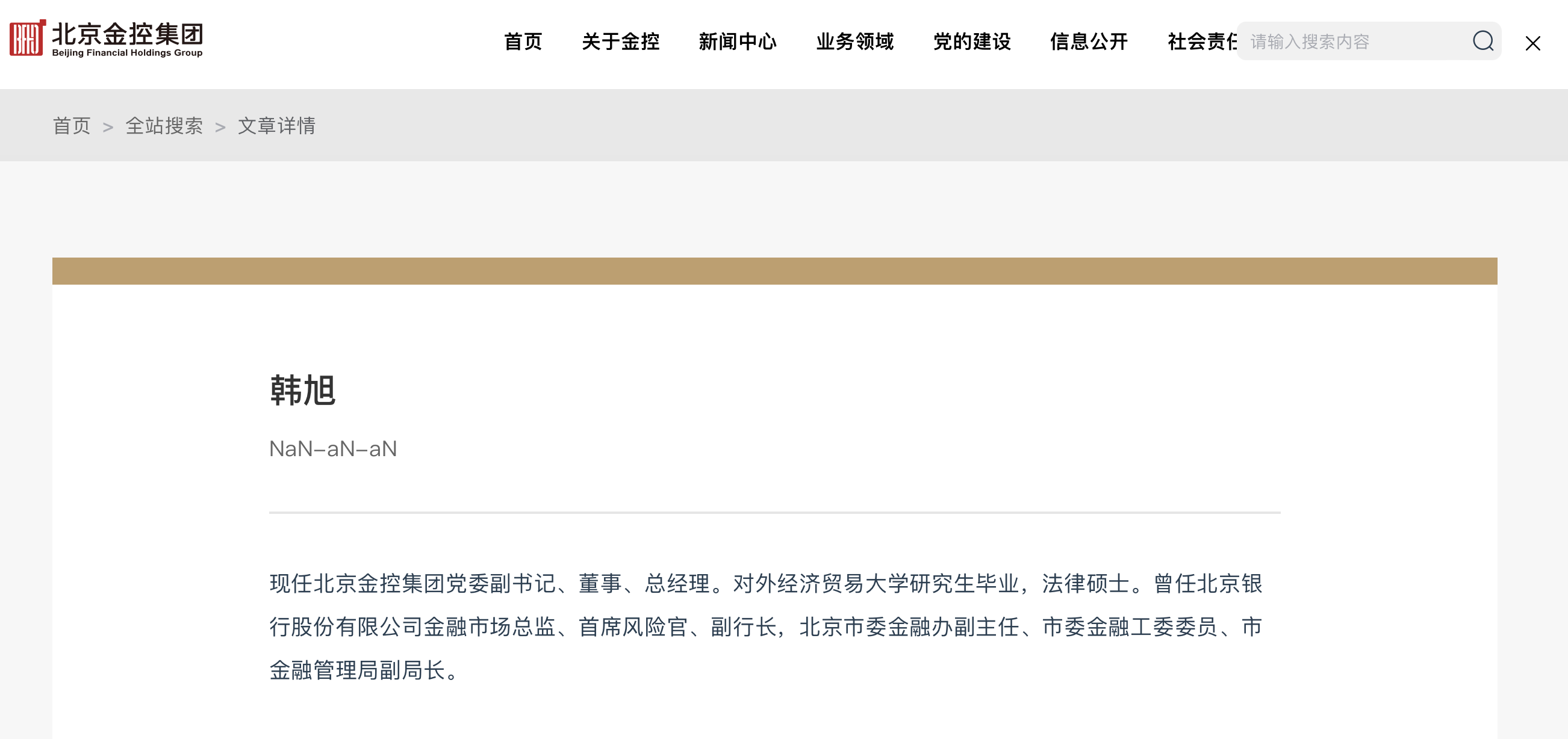 近日,北京金融控股集团有限公司官网更新信息显示,韩旭现已担任该集团党委副书记、董事、总经理。