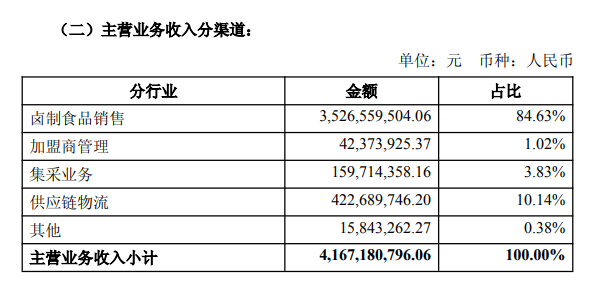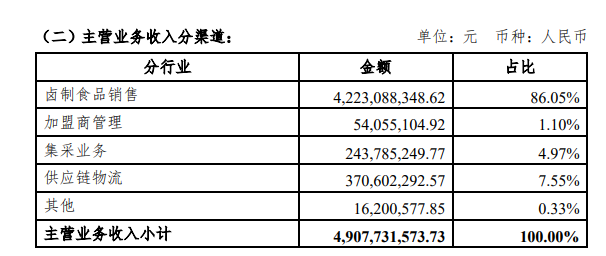 作为卤味行业头部企业,绝味食品的主营业务始终聚焦休闲卤制食品生产销售及连锁加盟运营,其中卤制食品销售收入占比超八成。