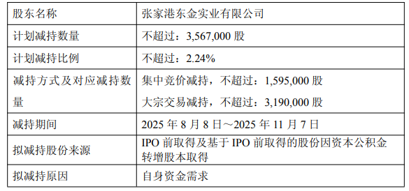 据7月17日公告,持有公司2.24%股份的股东东金实业,计划在8月8日至11月7日减持合计不超过356.70万股,占公司总股本的比例不超过2.24%。