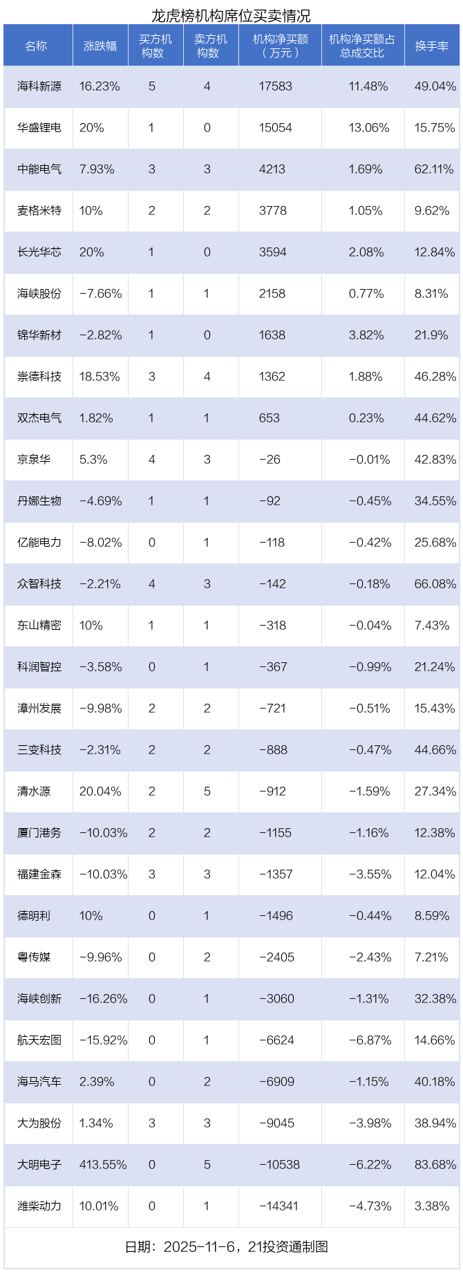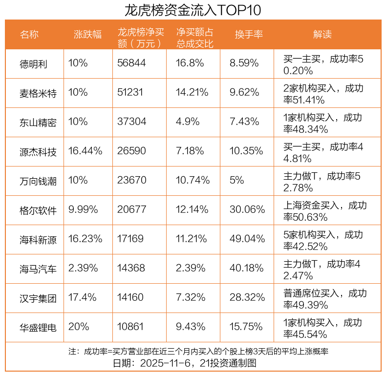 5.68亿资金抢筹德明利,机构狂买海科新源(名单)丨龙虎榜