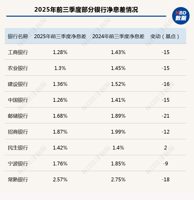国有大行与部分股份行息差降幅显著,负债成本优势与资产结构调整是关键。国有大行净息差普遍下降15个基点左右,邮储银行因独特的业务结构,息差降幅更大,达21个基点。零售龙头招商银行息差也下降12个基点,但1.87%的水平仍在行业中维持前列。这表明,即使是以负债成本低著称的大行和以资产定价能力见长的招行,也难以完全抵消资产端收益率下行的压力。如何进一步优化资产投向、稳住负债成本,是它们面临的首要课题。