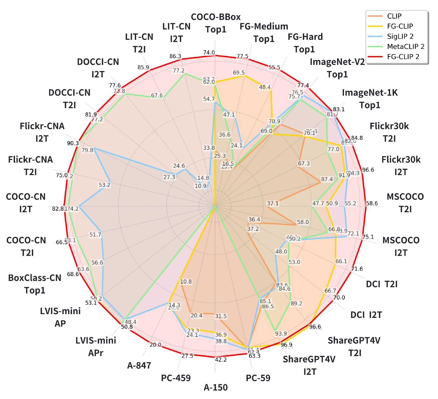 近期,360集团低调开源的视觉语言对齐模型FG-CLIP2,在全球科技圈掀起热议。这款模型在涵盖长短文本图文检索、目标检测等在内的29项权威公开基准测试中,全面超越科技巨头Google的SigLIP2与Meta的MetaCLIP2,标志着中国在AI基础模型领域取得了又一突破性进展。