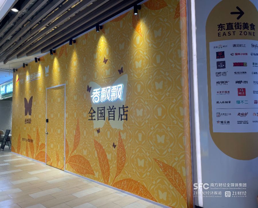 11月6日,21世纪经济报道记者走访杭州大悦城看到,香飘飘(603711.SH)全国首店即将开业。