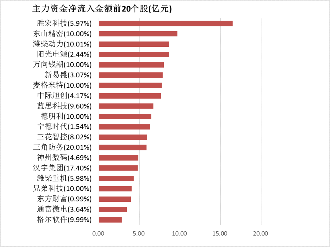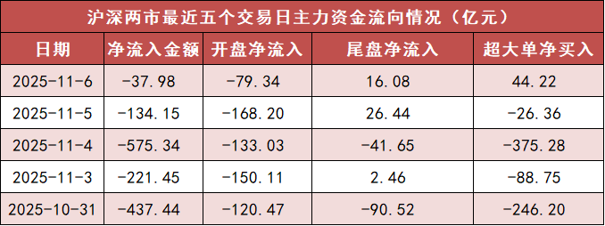 今日沪深两市主力资金开盘净流出79.34亿元,尾盘主力资金净流入16.08亿元,两市全天主力资金净流出37.98亿元。