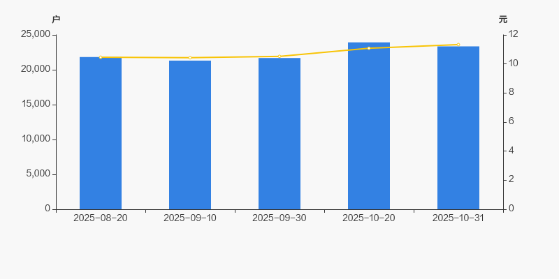 2025年8月20日至今,公司股东户数有所增长,区间涨幅为7.01%。2025年8月20日至2025年10月31日区间股价上涨8.32%。