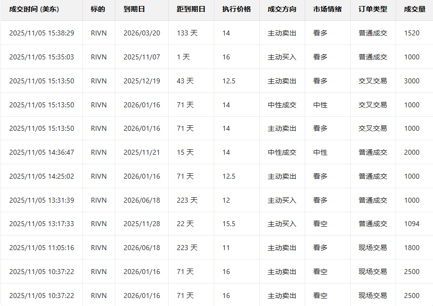 1、Rivian Automotive上一交易日涨23.36%,前一日认沽/认购比例小幅下行,成交量大幅度上行。