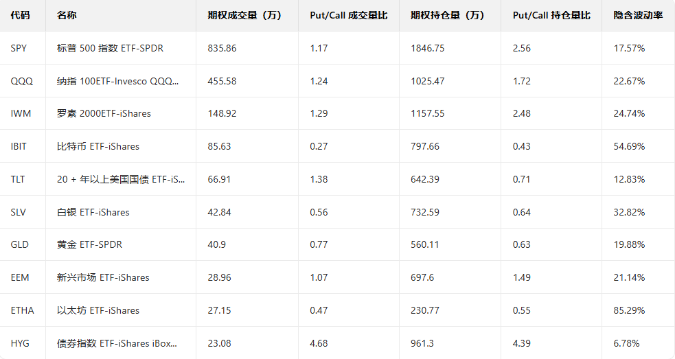 三、美股ETF期权成交榜美股ETF期权成交量排行榜前十