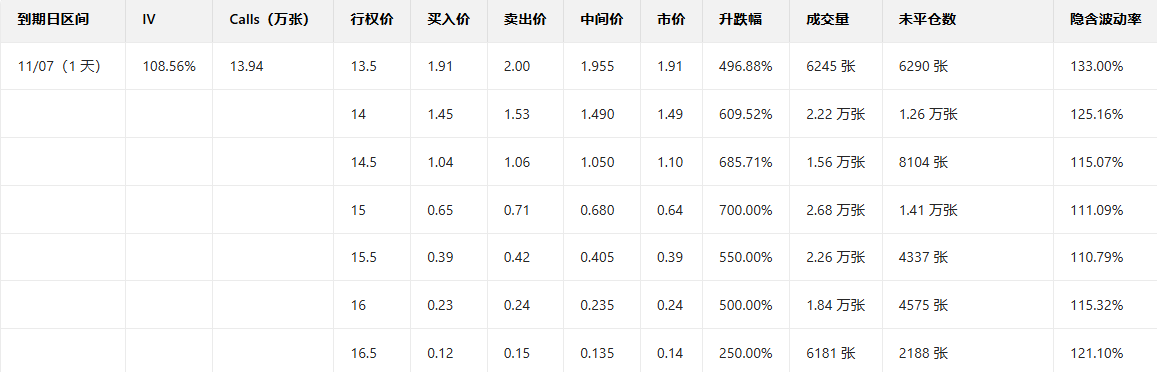 观察本周五到期的Call单,多张涨幅翻倍。