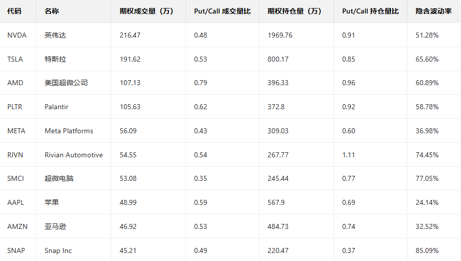 美股期权成交量排行榜前十