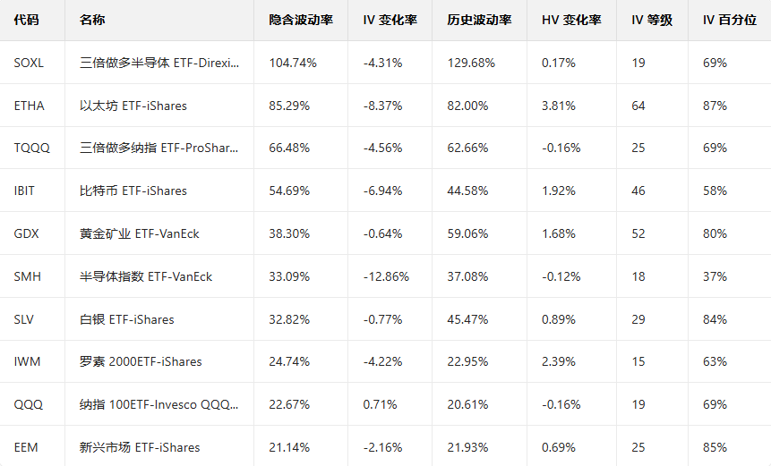 美股ETF引申波幅排行榜前十(标的要求:市值>100亿美元)