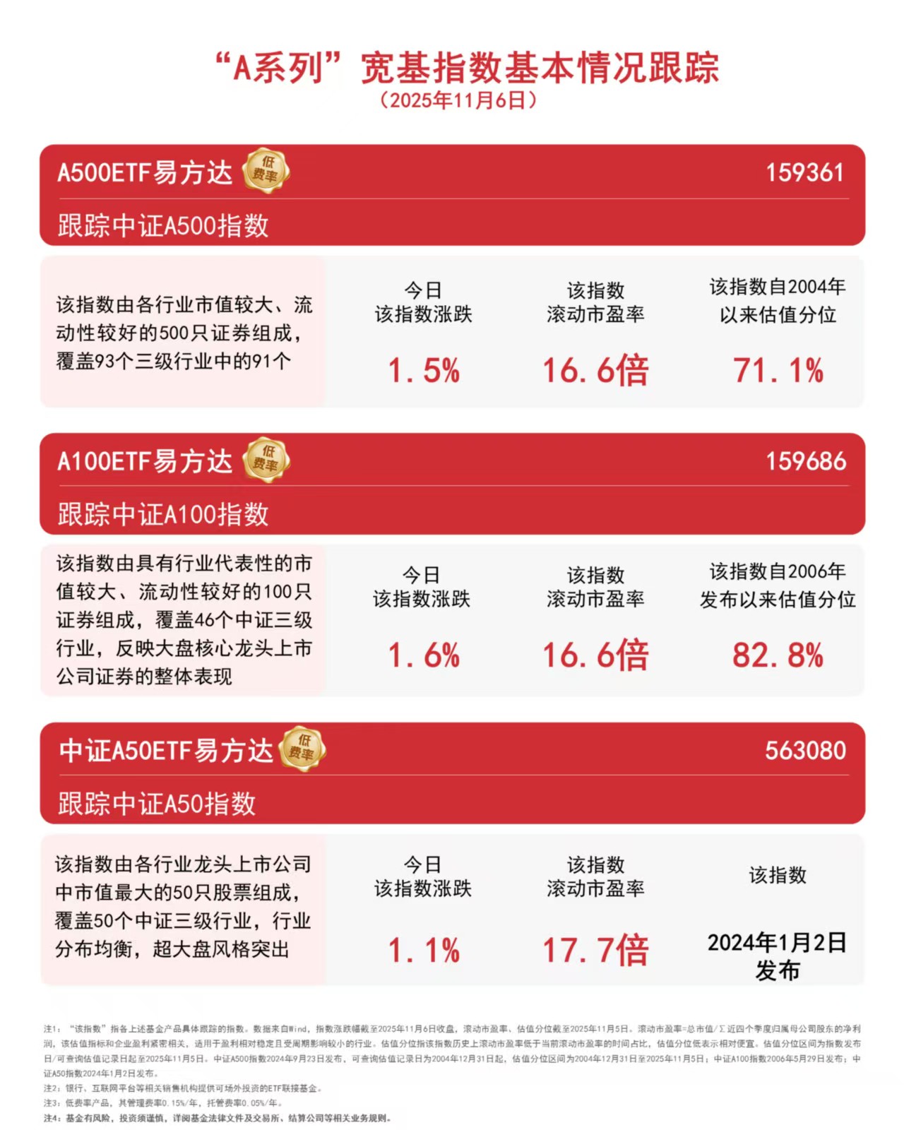 “A系列”指数集体涨超1%,A500ETF易方达(159361)全天净申购超6000万份