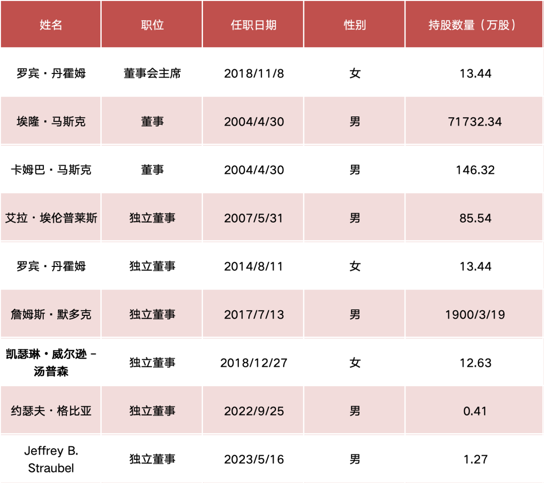 公开数据显示,特斯拉董事会目前拥有10名成员,除董事会主席丹霍姆和马斯克兄弟外,其余均为独立董事,多数独立董事持有数十万股特斯拉股票。