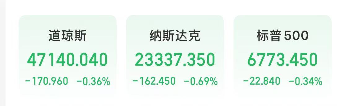 北京时间11月6日晚,美股三大指数集体低开,截至发稿前,道指跌0.36%,纳指下跌0.69%,标普500指数下跌0.34%。