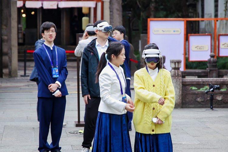 11月6日,上游新闻记者在乌镇体验了一场经典古籍文化穿越。这项体验来自今年世界互联网大会乌镇峰会社会化活动“文澜重光·数韵流芳”,在MR混合现实、AI智能体、数字人等技术加持下,体验者“走进”数字重建的文澜阁,以轻松有趣的切身体验感知古籍文化的魅力。