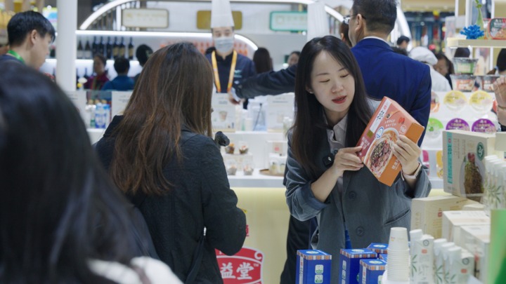 本届进博会的一大看点,是益海嘉里金龙鱼围绕“东方食养传承千年智慧,科学膳食筑牢健康生活”的核心理念,首次以大健康主题亮相主展台。大健康品牌“金龙鱼丰益堂”功能性产品在展台上重点展出,积极响应国家大健康战略,吸引观众纷纷驻足。