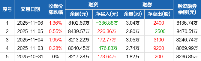 家家悦:融资净偿还336.88万元,融资余额8102.69万元(11-06)