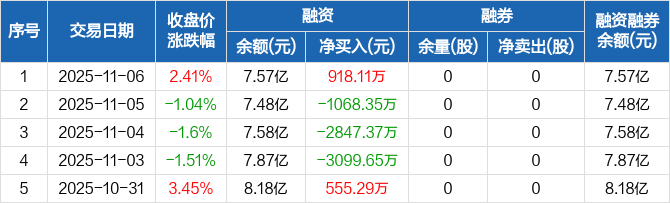 达梦数据:融资净买入918.11万元,融资余额7.57亿元(11-06)