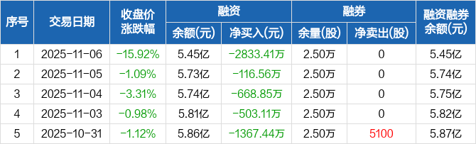 航天宏图融资融券信息显示,2025年11月6日融资净偿还2833.41万元;融资余额5.45亿元,较前一日下降4.95%。
