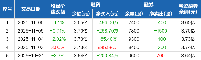 航天长峰融资融券信息显示,2025年11月6日融资净偿还496万元;融资余额3.65亿元,较前一日下降1.34%。