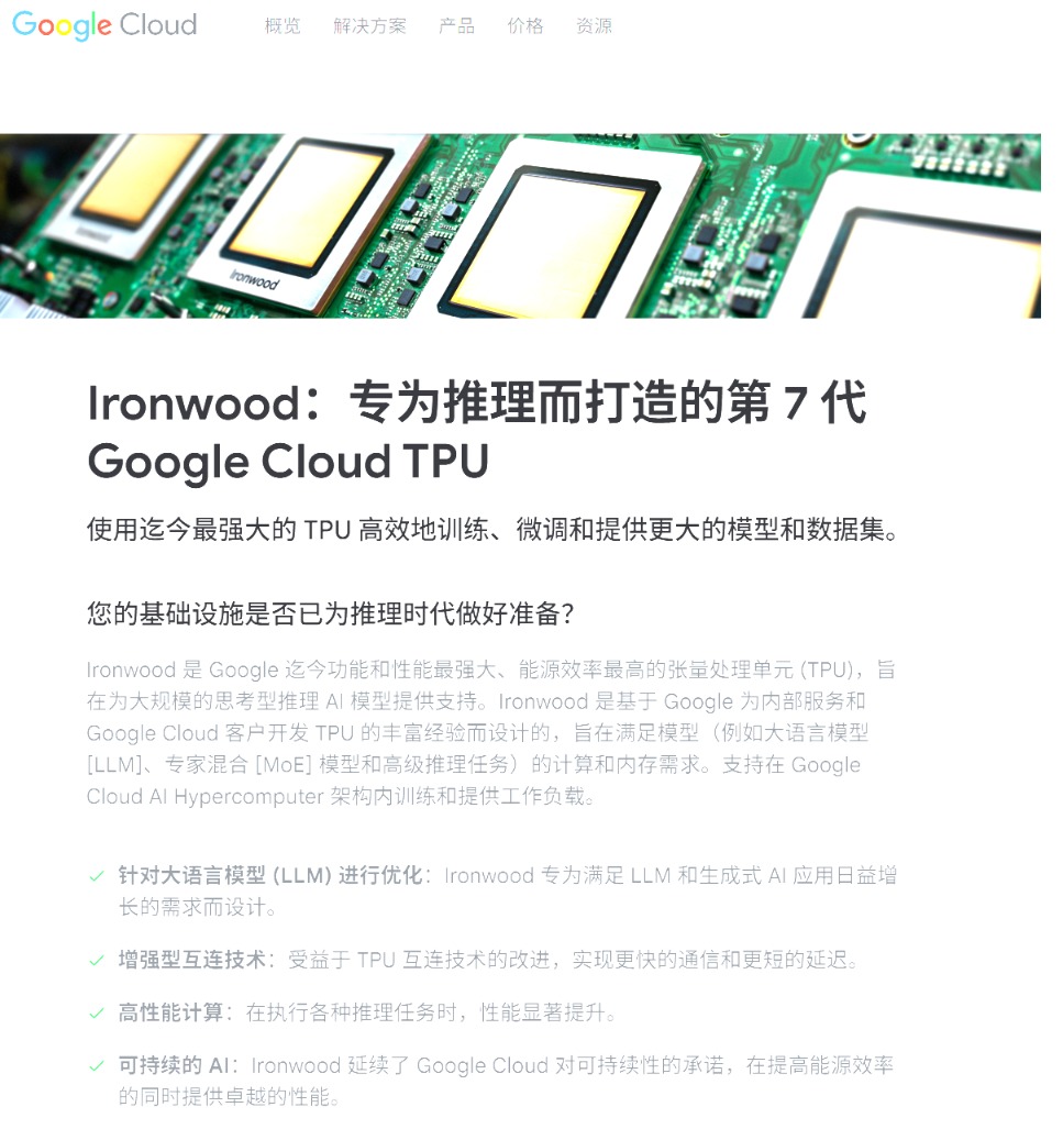 公开信息显示,Ironwood已受到多家大客户排队预订,其中,人工智能初创公司Anthropic计划采购多达100万个新TPU,以支持其Claude模型的运行。