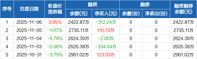芯片ETF基金:融资净偿还312.24万元,融资余额2422.87万元(11-06)