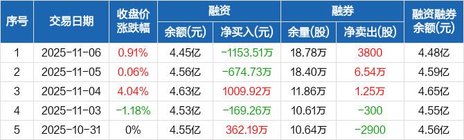 开山股份:融资净偿还1153.51万元,融资余额4.45亿元(11-06)